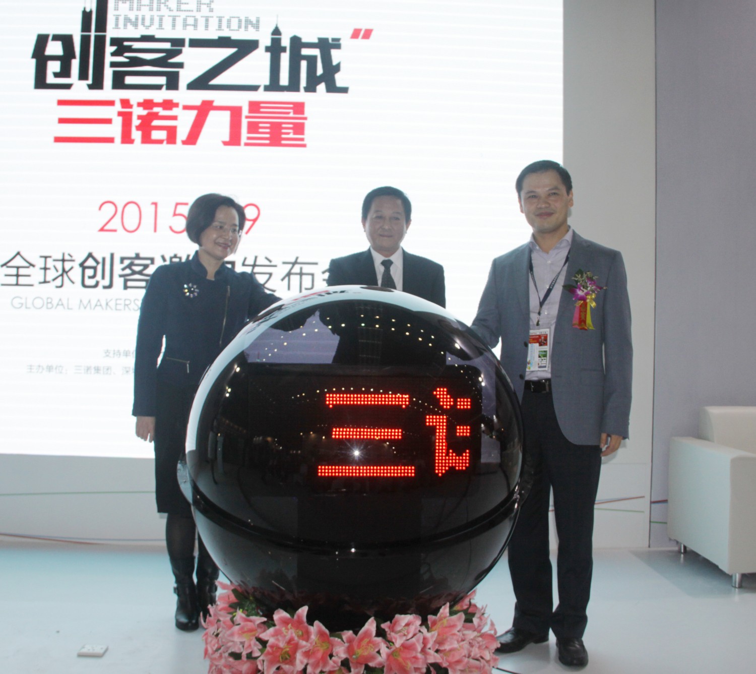 4月9日,2015中国电子信息博览会在深圳会展中心拉开序幕,当天下午,由三诺集团、深圳市工业设计行业协会、深圳市智慧家庭协会主办的“全球创客邀约发布会”在三诺展台隆重举行,以“创客之城、三诺力量”为主题,正式发布“3+计划”。