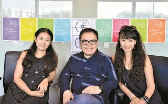 刘芳及刘小康(左一、二)介绍在深圳举行的第一届深港设计双年展