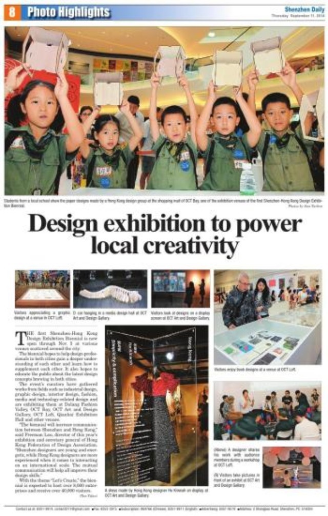“The biennial will increase communication between Shenzhen and Hong Kong,” said Freeman Lau, director of this year’s exhibition and secretary general of Hong Kong Federation of Design Association. “Shenzhen designers are young and energetic, while Hong Kong designers are more experienced when it comes to interacting on an international scale. The mutual communication will help all improve their design skills.”