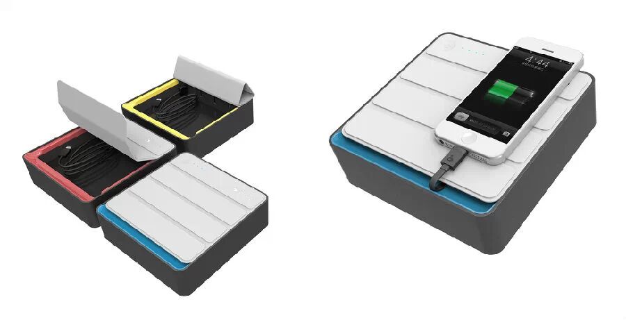 作品含义及独特性:COV-BOX桌面充电站是“分享概念”下的移动电源产品,首次采取超大容量24000mAh的安全锂聚合物电池,转化率达85%;通过micro usb可对自身进行1.5A快速充电,另设置3×USB总达4.4A的输出,为智能手机和平板匹配最佳充电电流;可同时为两部手机和一部平板充电。