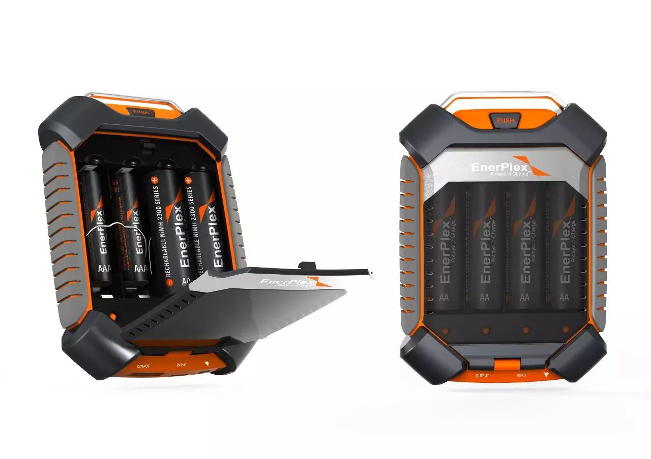 Jumpr Quad 可用镍氢电池组作为主要的电量存储部件。它能够将普通电池和镍氢电池中的电能转化到5V的USB输出口,因此它是循环充电的手提设备很好的备用电源,同时也可以通过USB口给镍氢电池充电。Jumpr Quad还整合了应急手电功能,顶部的挂钩可用来挂在包包或者皮带上,户外携带非常方便。