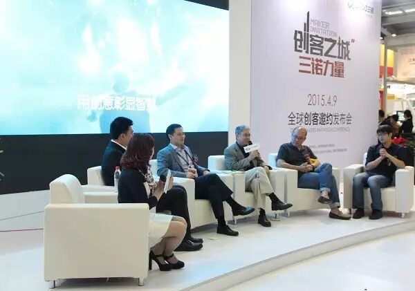 “创客基金”启动后,在深圳市工业设计行业协会执行副会长兼秘书长封昌红女士主持下,由三诺集团董事长刘志雄先生,机智云总经理黄锡雄先生,原富士康副总裁、T&F CEO程天纵,新车间创始人、开源创新第一人李大维,Makeblock创客空间创始人王建军先生组成的资深创客代表针对深圳创客的发展进行了一场激烈对话,将整个发布会推向高潮。