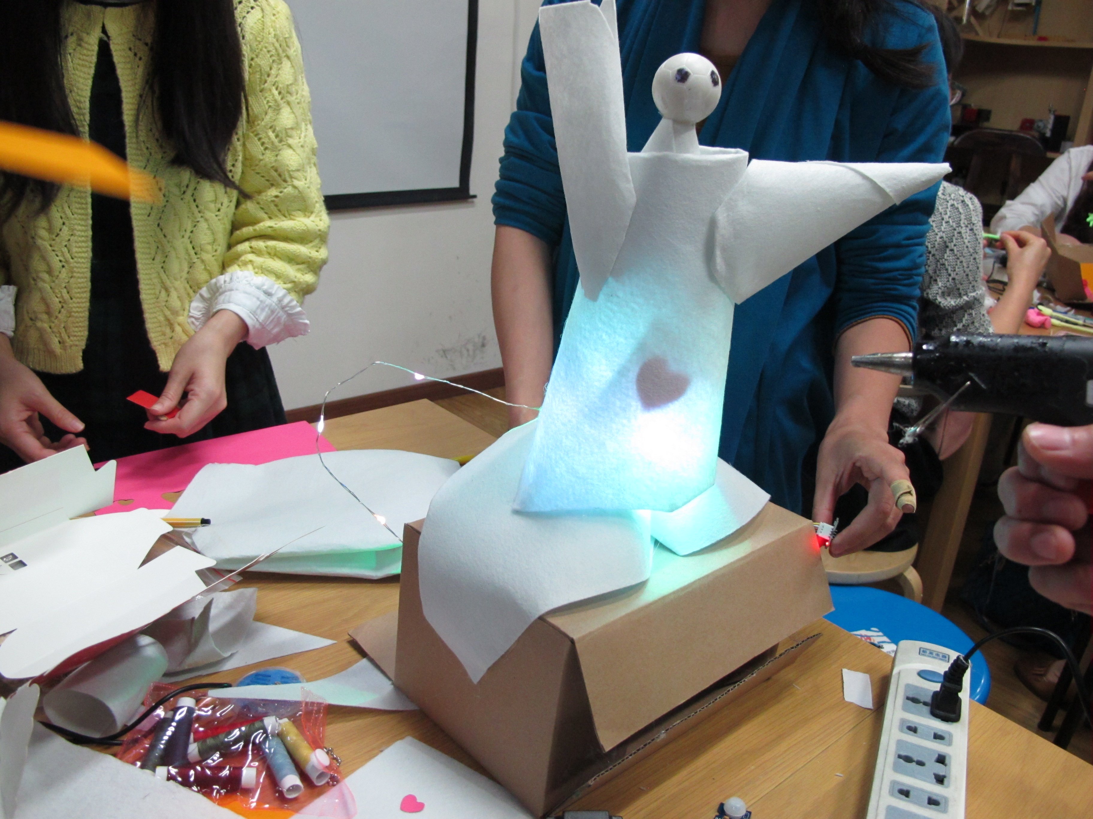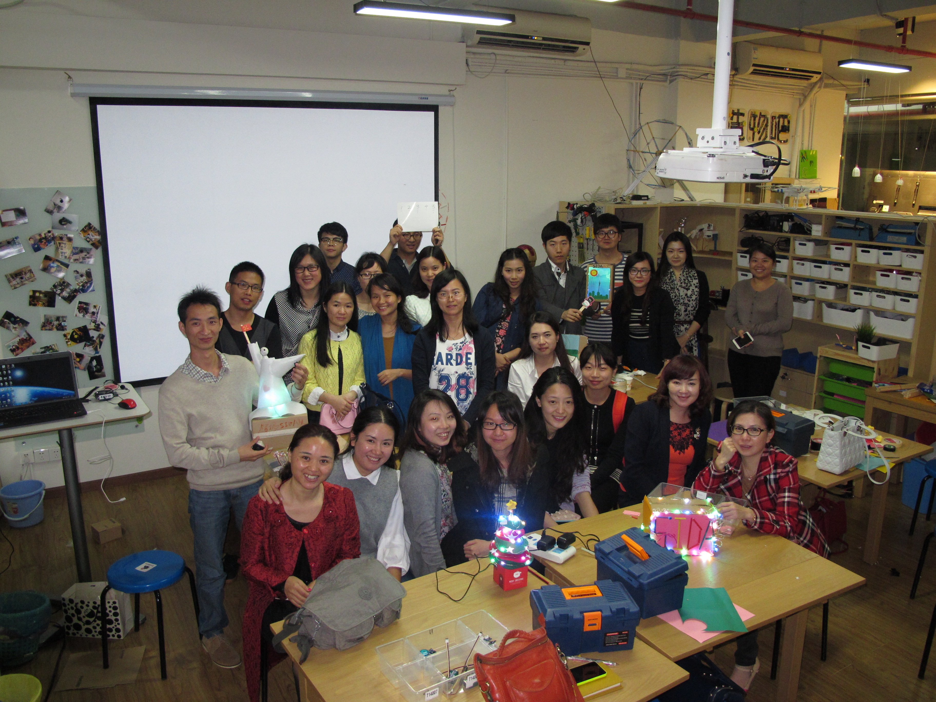 接下来就是当天的重头戏了,SIDA小伙伴们分成了五个小组,每个小组分发一套造物吧提前准备好的tech-box套件包,并利用里面的工具创作一件作品。大家一定非常好奇SIDA小伙伴们创作出了怎样的作品,下面就让小编来揭晓吧。