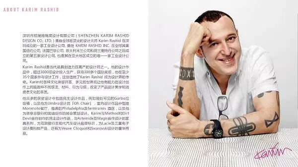 凯瑞姆·瑞席是当代最具创造力且高产的设计师之一。他的设计作品中超过3000项设计投入生产,获得300多个国际奖项,他至少在35个人国家参与过设计工作。凯瑞姆·瑞席对各种文化兼容并序,多元的世界观让他有能力在设计创作上跨越各种不同想法、材料、行为习惯,改变了产品设计美学和消费者文化的本质。