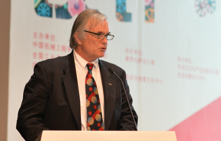 图为国际工业设计联合会前主席,智利密斯特拉尔大学设计、技术和工程学院院长卡洛斯·欣里希森先生致辞