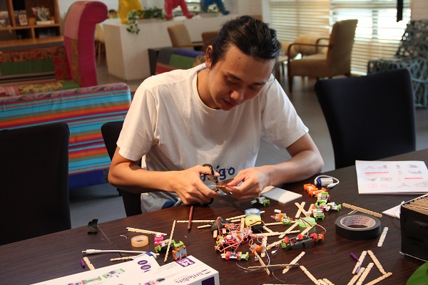 不少人会认为设计创意对于普通老百姓来说是一件很遥远的事情,在平常的生活的当中很少能够接触到,而这次的“电子拼图”工作坊正可以打破他们的这种观念。王震杰先生在活动中带来的电子拼图实质上是适合小朋友的玩具,在玩耍的过程中需能够激发自身的创新意识来拼组出不同的电子物件,让小朋友们在生活中也能够当一回小小设计师。