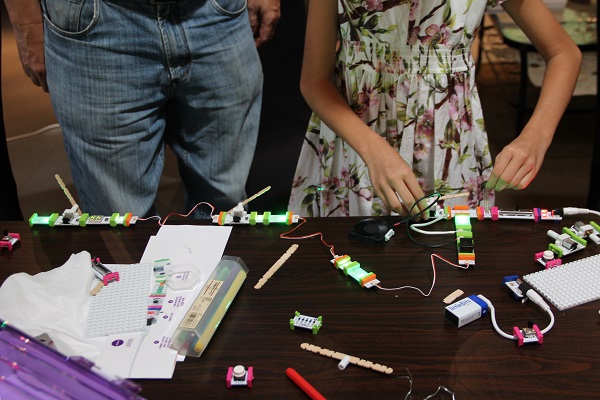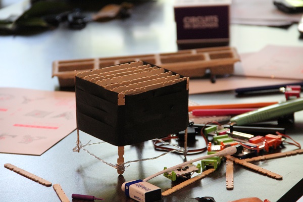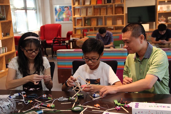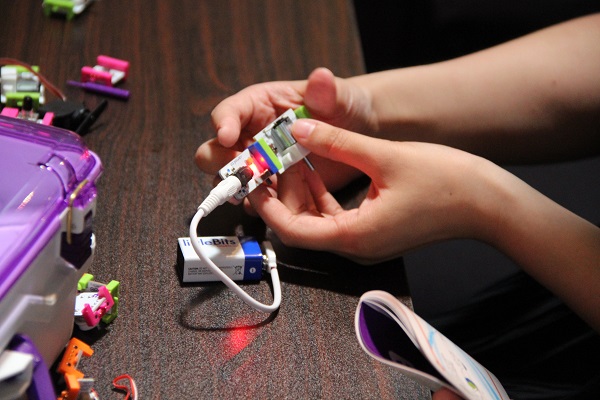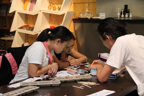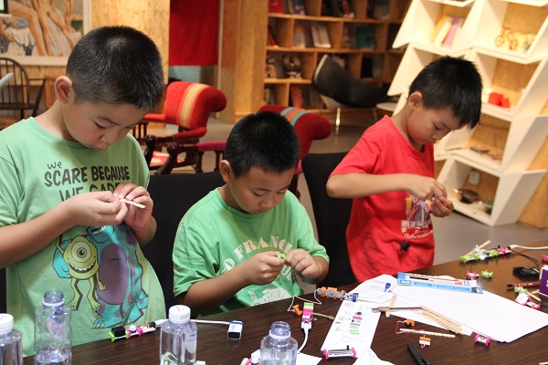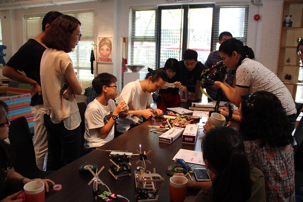 在活动现场,最兴奋的莫过于颇具设计师气派的小小参与者们,在主讲嘉宾为他们一一讲解各个电子模块的用途以及连接原理后,马上就开始为他们的奇思妙想动手实操,设计出风车、发光屋、发出奇怪叫声的风扇等各个风格迥异的物件。连摄像师也被现场的设计创作气氛感染,利用电子配件为摄像机制作了一个自动镜头盖,引来现场人员的阵阵叫好。
