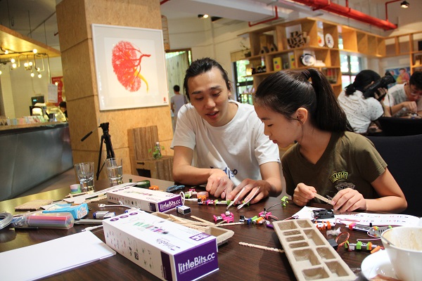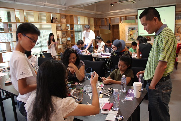 9月27日下午,第一届深港设计双年展创新工作坊系列活动之电子拼图在深圳华﹒艺术沙龙火热举行。活动当日,16名设计界人士及平常百姓在现场利用电子独立模块设计制造出自己的创意电子玩具,一享电子设计的乐趣。