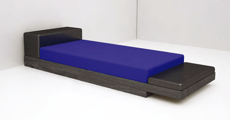 他此次带来的设计作品以涵盖小家具的室内小装饰品为主,简洁优雅又实用贴心。此次带来的一张床设计细腻,专为“睡眠时间”而设计。一般的床具,通常头部设计为床头板,而这件家具在软包床头上设计了靠枕,既考虑到对头部的保护,也可以作为第二个枕头,在就寝前后用来倚靠头部。床的脚部设计脚踏板,可以用来放置睡衣等床上用品,用途多种多样。